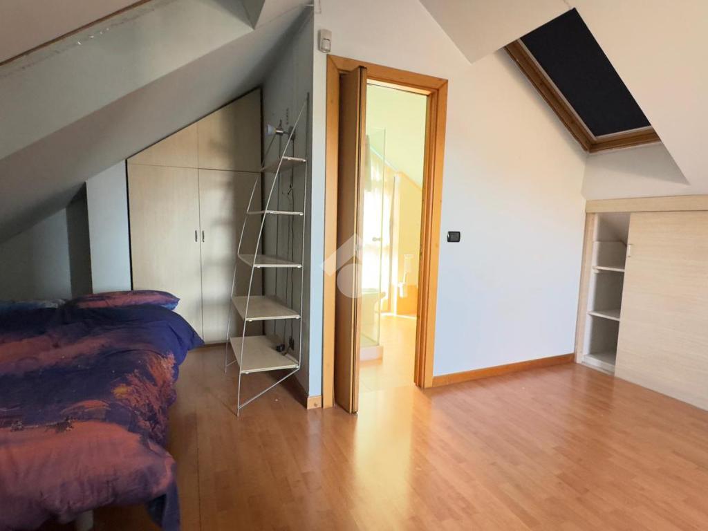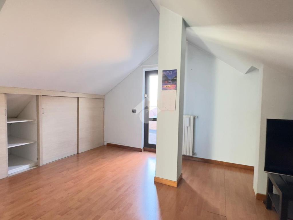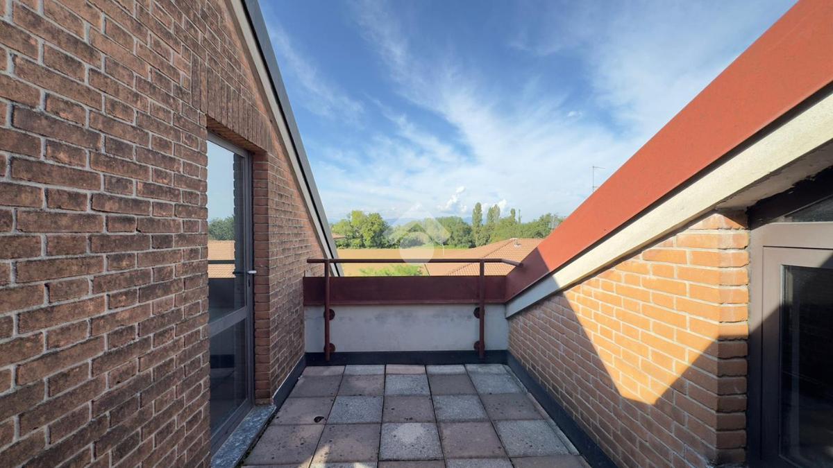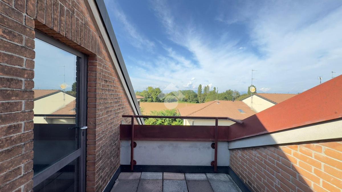 L'appartamento è collocato all’ultimo piano di una piccola palazzina dotata di ascensore, rifinita in mattoncino a vista, situata in una zona residenziale e tranquilla. È disposto su due livelli, piano secondo e terzo/sottotetto collegati da scala interna ma con doppio ingresso dal vano scale. Gli spazi interni sono ampi e ben organizzati, luminosi grazie alla doppia esposizione. Al secondo piano, troviamo il soggiorno dotato di balcone, è presente una cucina abitabile con ulteriore balcone, un pratico ripostiglio e un disimpegno che separa le due camere, entrambe con balcone, e i due bagni. Una comoda scala a chiocciola collega al piano sottotetto composto da un ampio locale oltre a lavanderia e balcone Nel prezzo è compreso un box auto. Riscaldamento autonomo. Disponibile immediatamente.