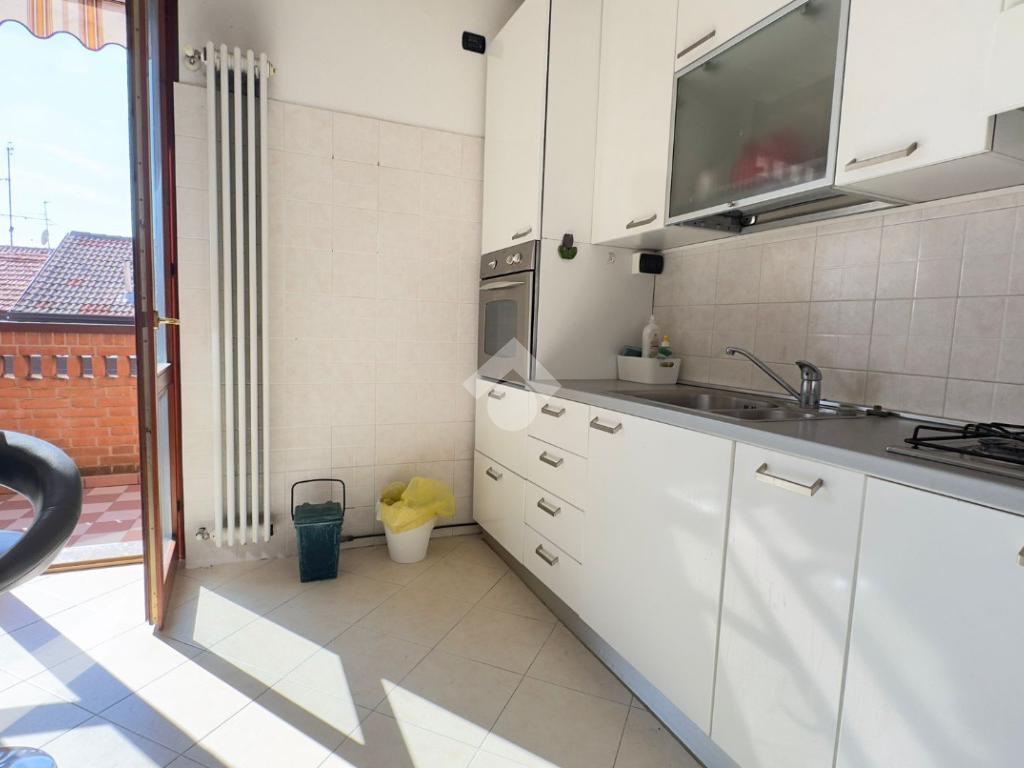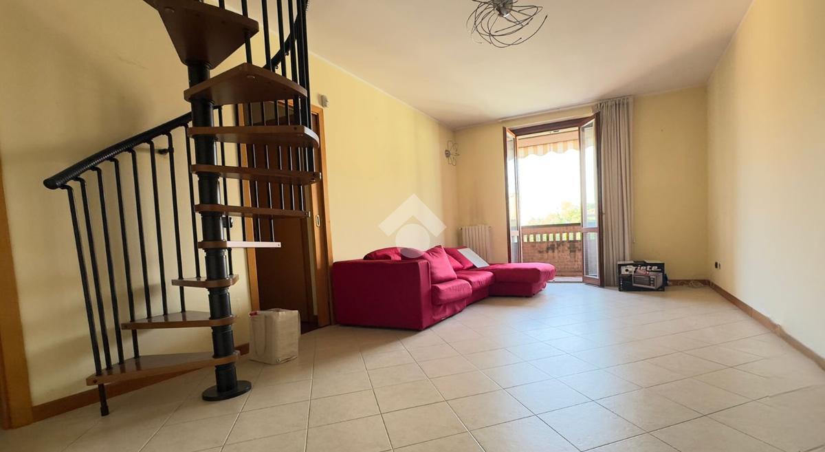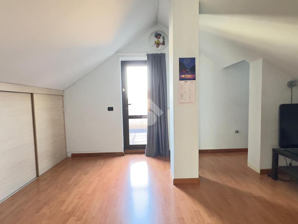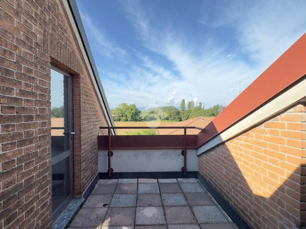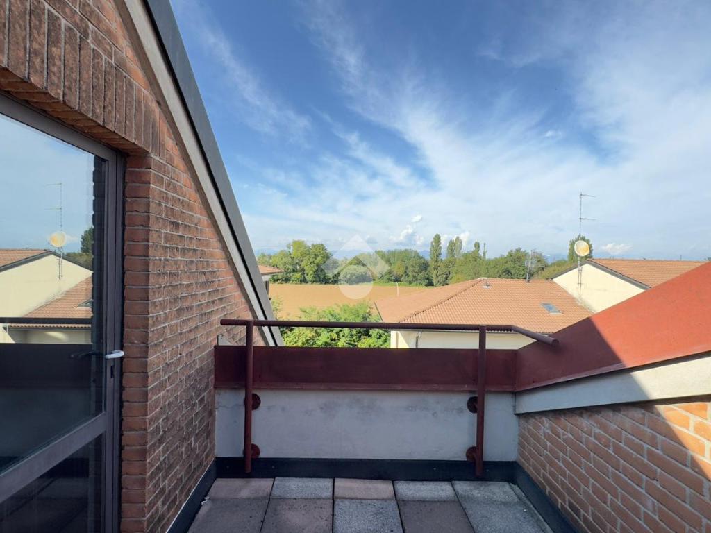 L'appartamento è collocato all’ultimo piano di una piccola palazzina dotata di ascensore, rifinita in mattoncino a vista, situata in una zona residenziale e tranquilla. È disposto su due livelli, piano secondo e terzo/sottotetto collegati da scala interna ma con doppio ingresso dal vano scale. Gli spazi interni sono ampi e ben organizzati, luminosi grazie alla doppia esposizione. Al secondo piano, troviamo il soggiorno dotato di balcone, è presente una cucina abitabile con ulteriore balcone, un pratico ripostiglio e un disimpegno che separa le due camere, entrambe con balcone, e i due bagni. Una comoda scala a chiocciola collega al piano sottotetto composto da un ampio locale oltre a lavanderia e balcone Nel prezzo è compreso un box auto. Riscaldamento autonomo. Disponibile immediatamente.