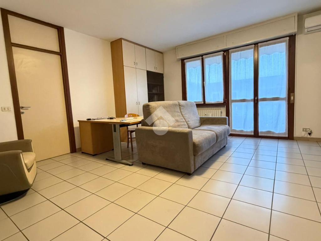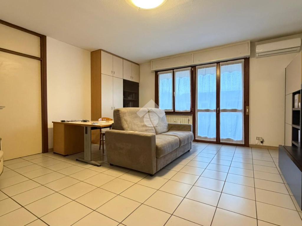 L'appartamento è collocato al terzo piano, servito da ascensore, di una palazzina sita in zona residenziale e tranquilla. Internamente presenta ambienti spaziosi e luminosi grazie alla doppia esposizione. L'ingresso è nell'ampio soggiorno accessoriato da balcone, nella zona giorno è presente un cucinotto, il disimpegno separa la camera matrimoniale ed il bagno finestrato. La cantina ed il box sono compresi nel prezzo. Libero subito.