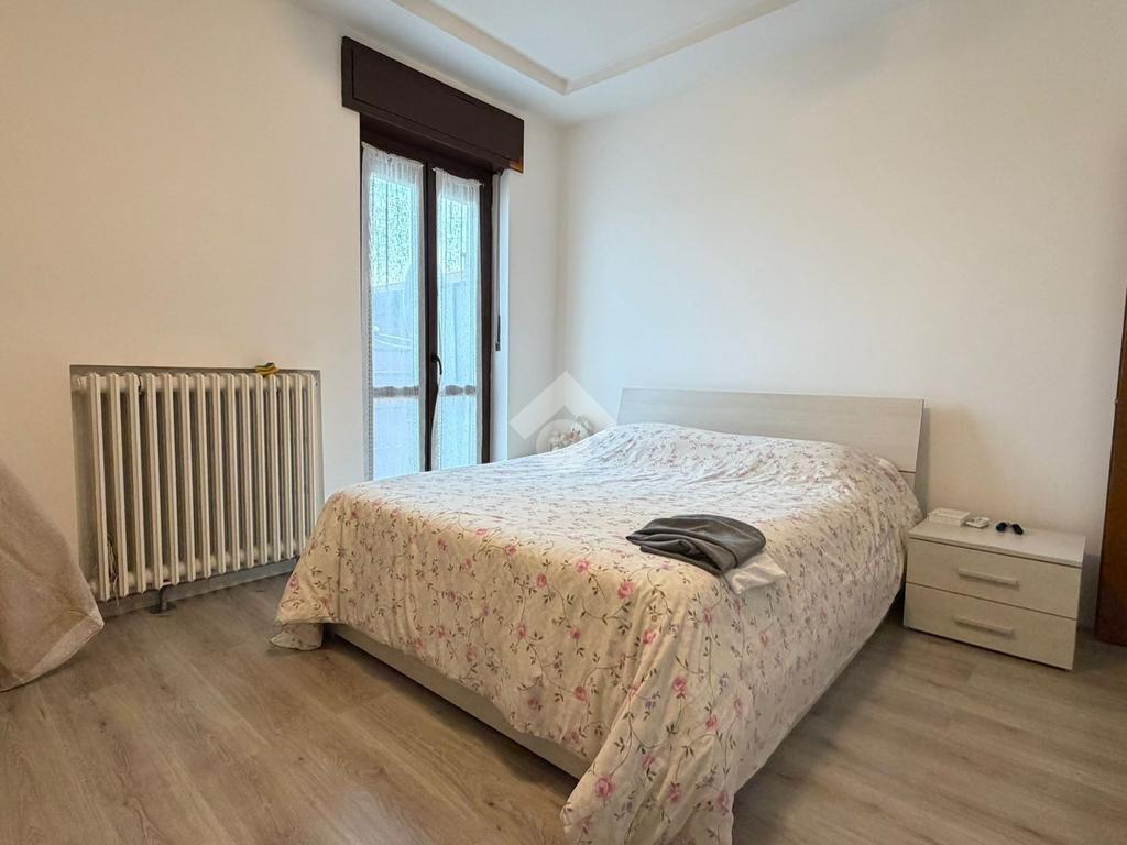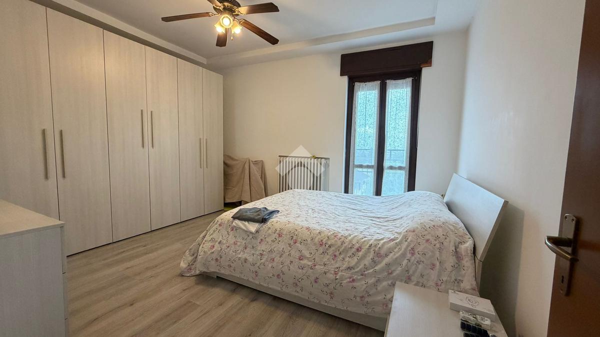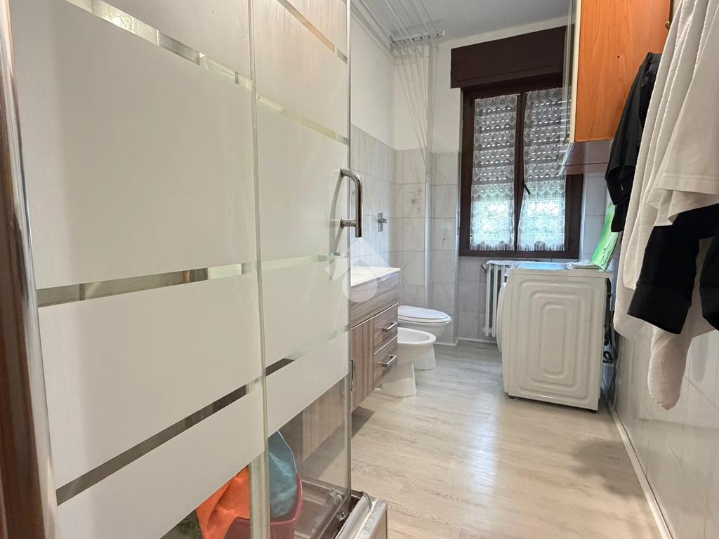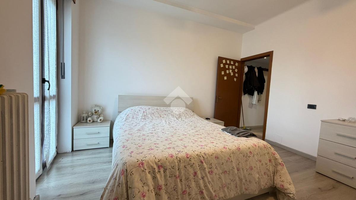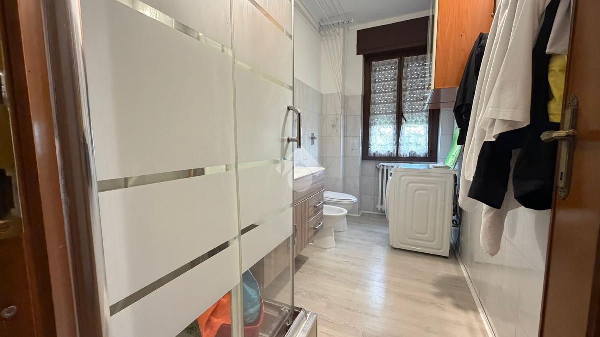 La zona notte comprende una spaziosa camera matrimoniale con secondo balcone e un bagno finestrato completo di box doccia.