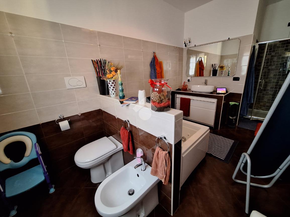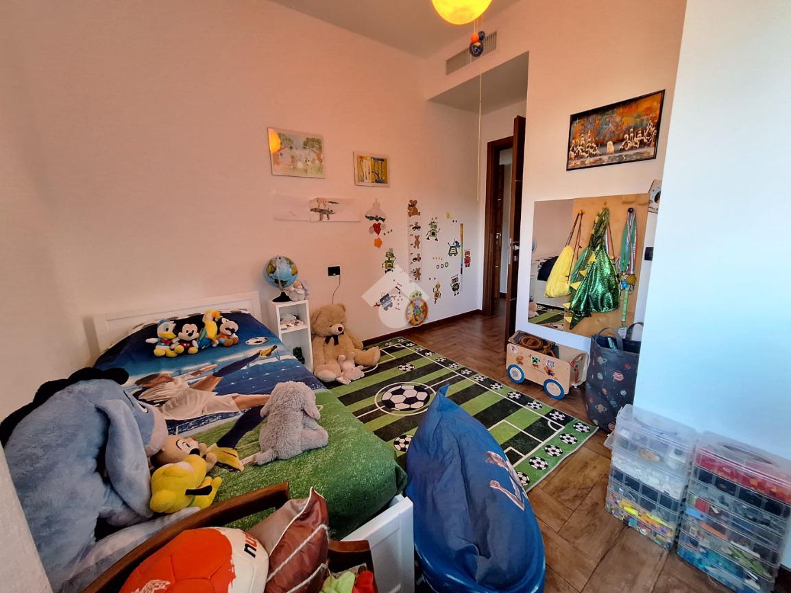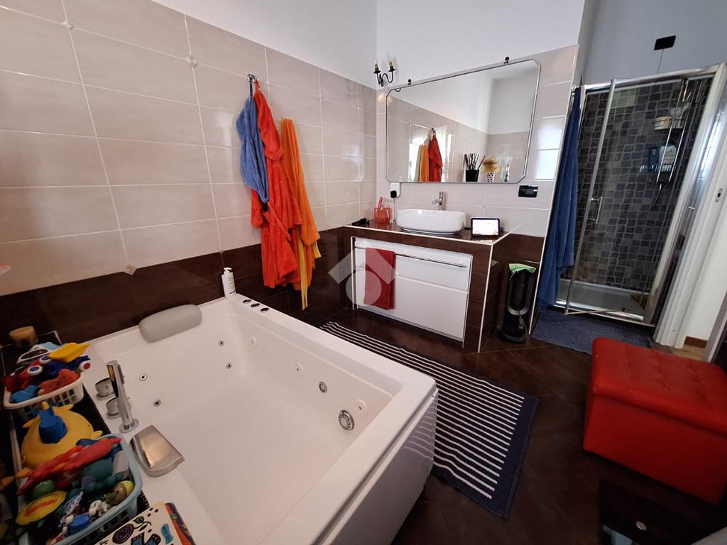 L’appartamento si trova al piano terra di una raffinata casa trifamiliare e accoglie con una zona giorno luminosa e ben distribuita, composta da soggiorno e cucina abitabile. La zona notte offre una spaziosa camera matrimoniale con cabina armadio e bagno en suite finestrato, oltre a una cameretta anch’essa dotata di cabina armadio e a un secondo ampio bagno finestrato, completo di box doccia e vasca multifunzione.