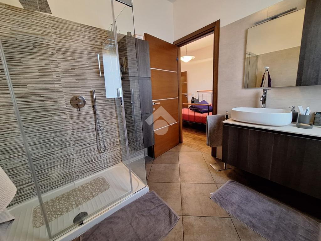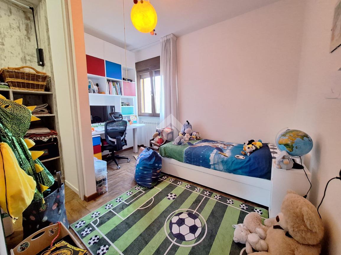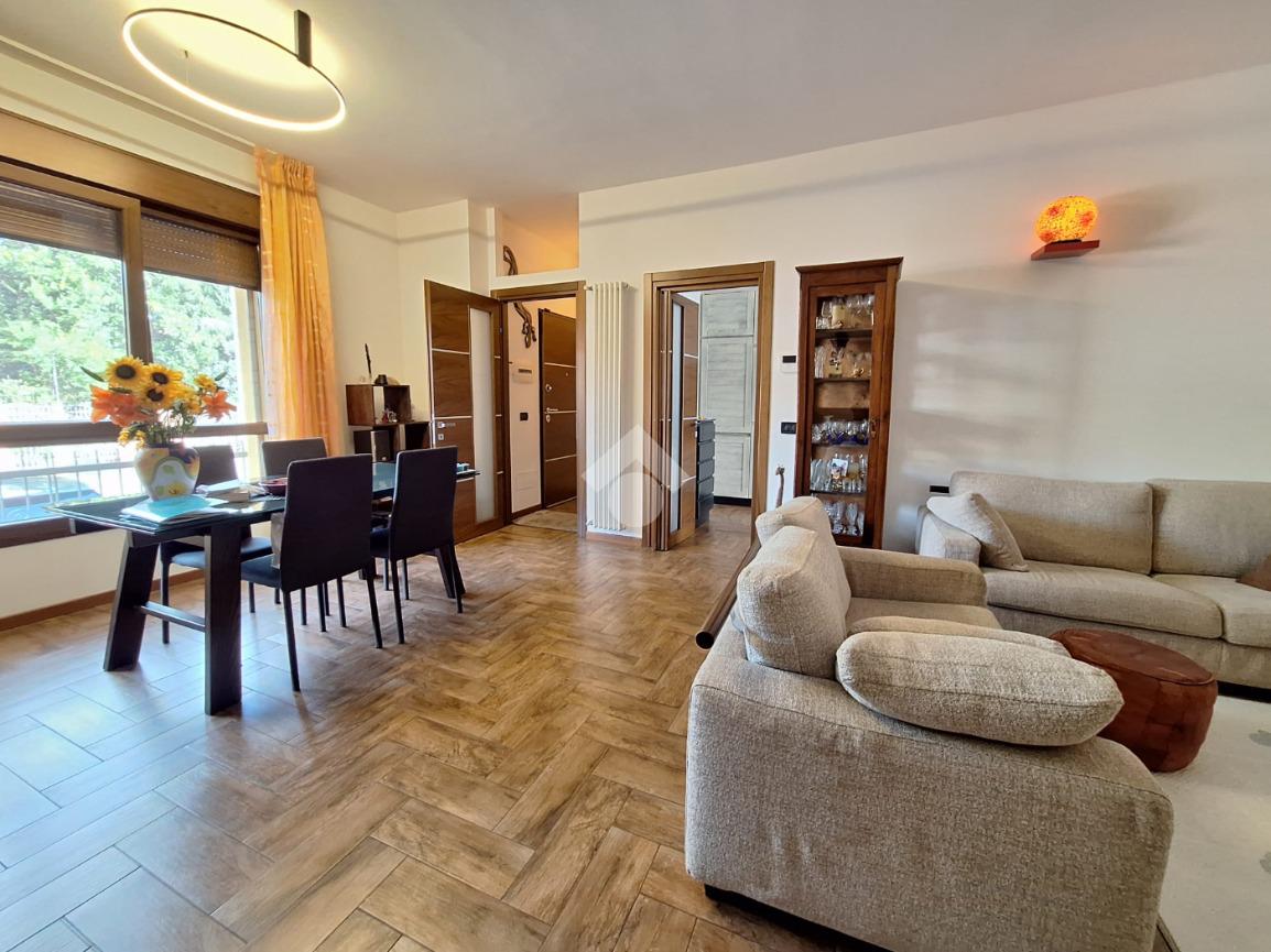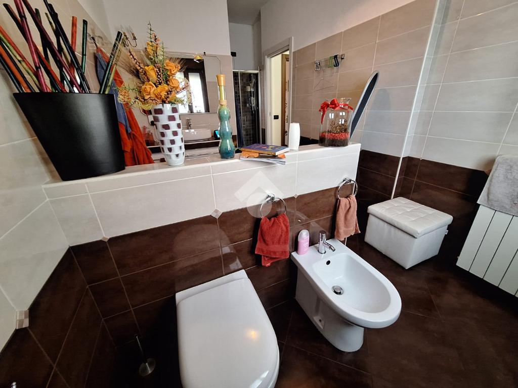 L’appartamento si trova al piano terra di una raffinata casa trifamiliare e accoglie con una zona giorno luminosa e ben distribuita, composta da soggiorno e cucina abitabile. La zona notte offre una spaziosa camera matrimoniale con cabina armadio e bagno en suite finestrato, oltre a una cameretta anch’essa dotata di cabina armadio e a un secondo ampio bagno finestrato, completo di box doccia e vasca multifunzione.